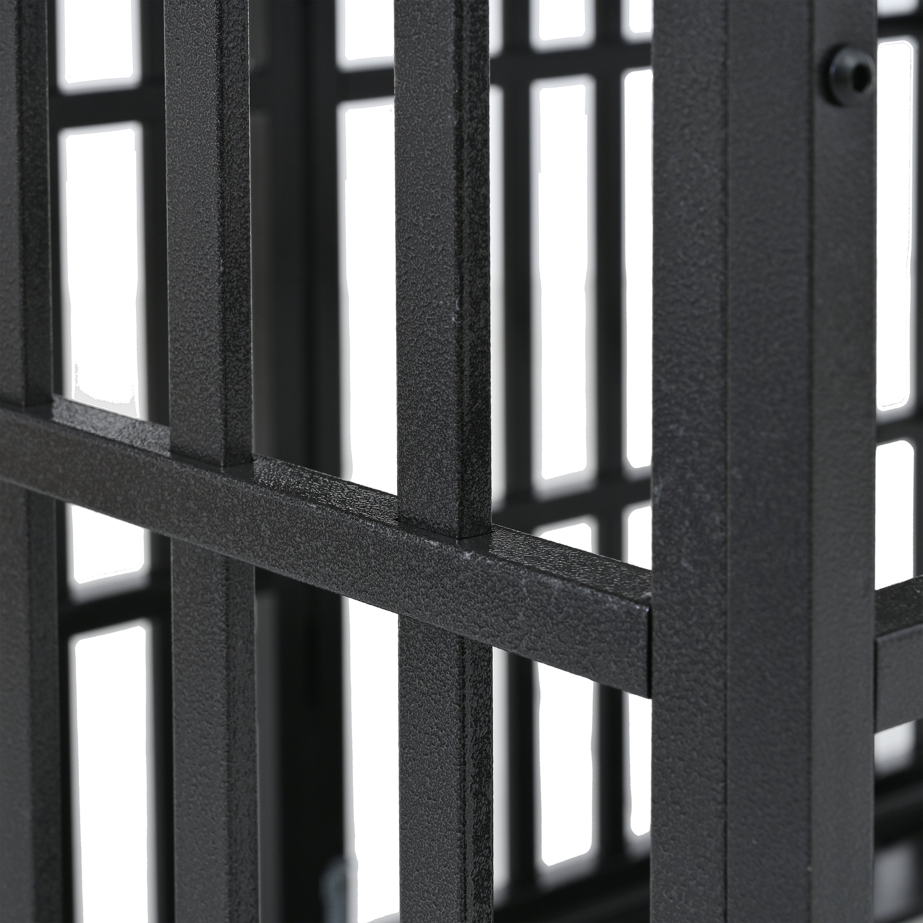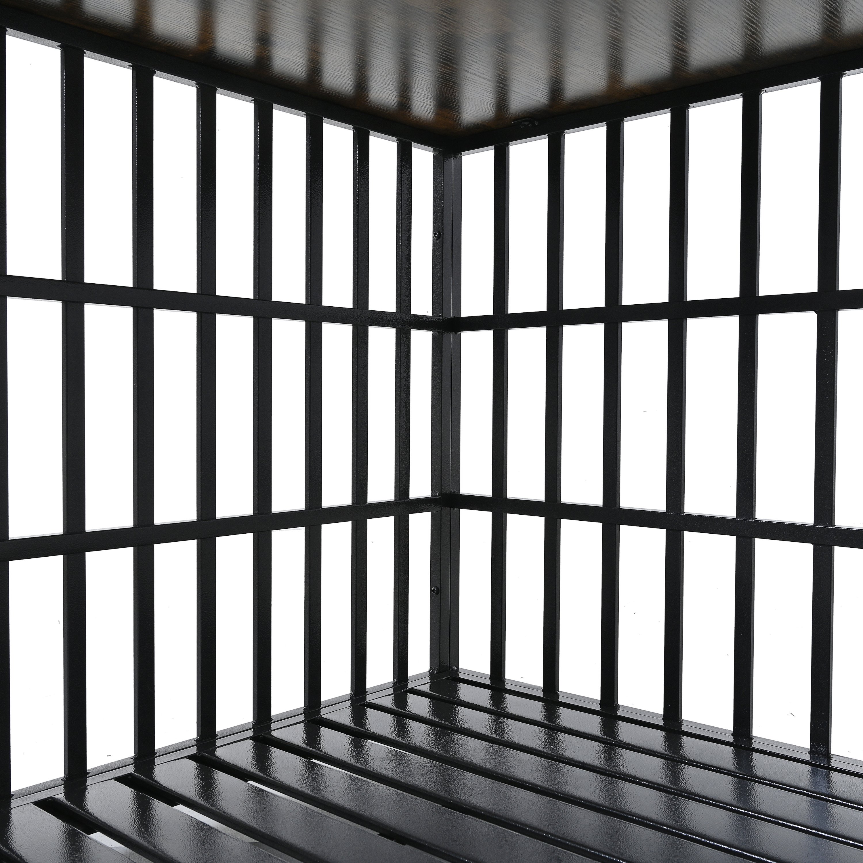 Sturdy Structure with Reliable MaterialHeavy duty frame made from sturdy steel and durable particleboard. All smooth metal bars are strong enough to ensure that your naughty pup can be safe inside. The metal coating and board surface are non-toxic in case it is chewed or licked by the dog.