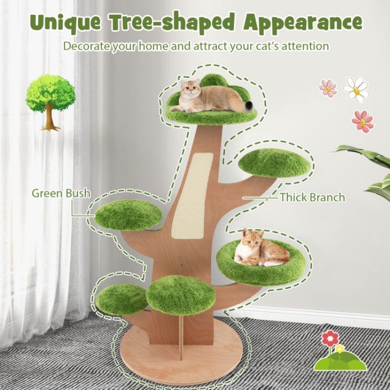 5.Creative Pine Shape Design: Built with a platform that resembles a lush green bush and posts that mimic thick branches, this pine-shaped cat tree not only adds a touch of beauty to your home but also captures your cat's attention. And the multi-level design is suitable for small spaces.