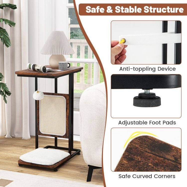 C- Shaped Cat Side Table Cat Tree with Scratching Board