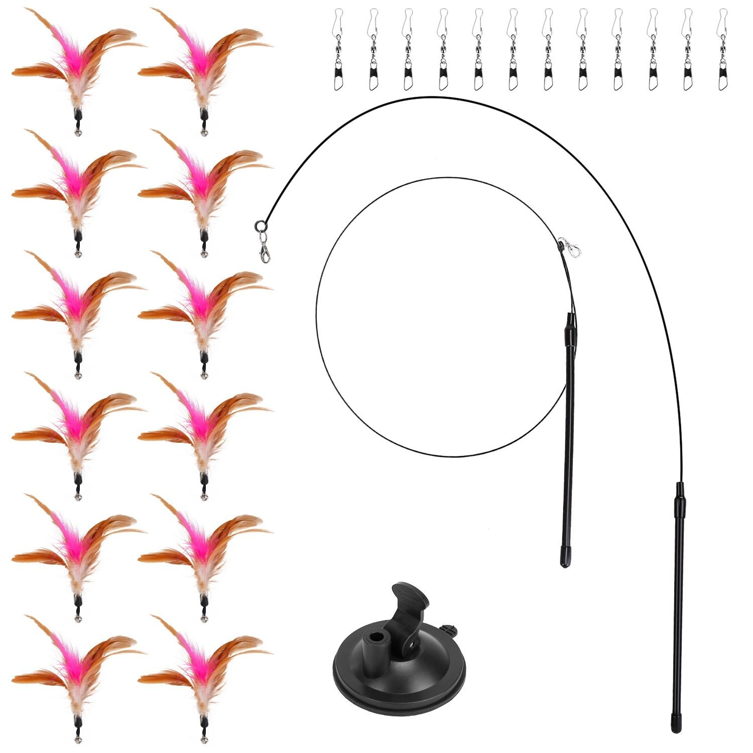 *Valuable Suit*:The package includes 2 durable and flexible wands; 12 premium lightweight feather replacements; 1 strong suction cup base and 4 sturdy pins; enough for your cats to play for a very long time. Your cat will fall in love with it.