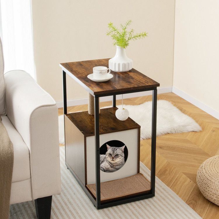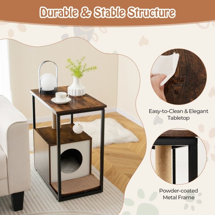 1.Versatile for Various Occasions: The cat cabinet and end table combo can serve as a convenient end table or nightstand, providing space to hold your books, laptops and other belongings in your living room or bedroom. Besides, it features teasing toy and cozy condo for your cats to play and sleep.