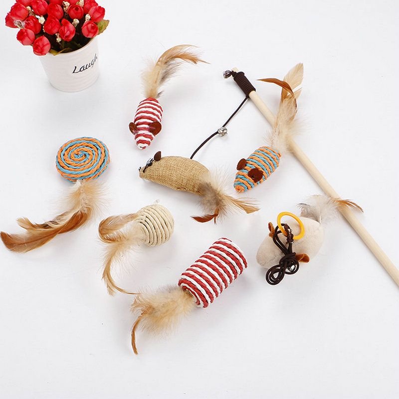 Home > Cat Natural Sisal Wand Teasers and Exerciser for Kitten with Mouse Bell Feather etc. Cat Toy Collection in a Box