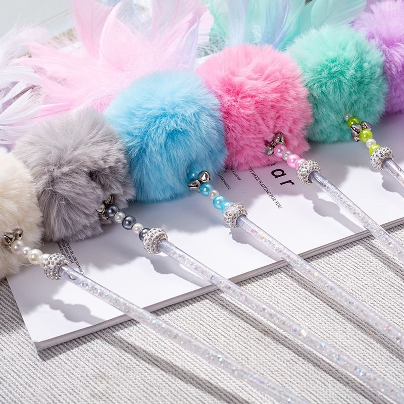 Home > Cat Teaser Fluffyball Feather Wand Stick Funny Interactive Pet Cat Toys Pet Kitten Play Interactive Toy