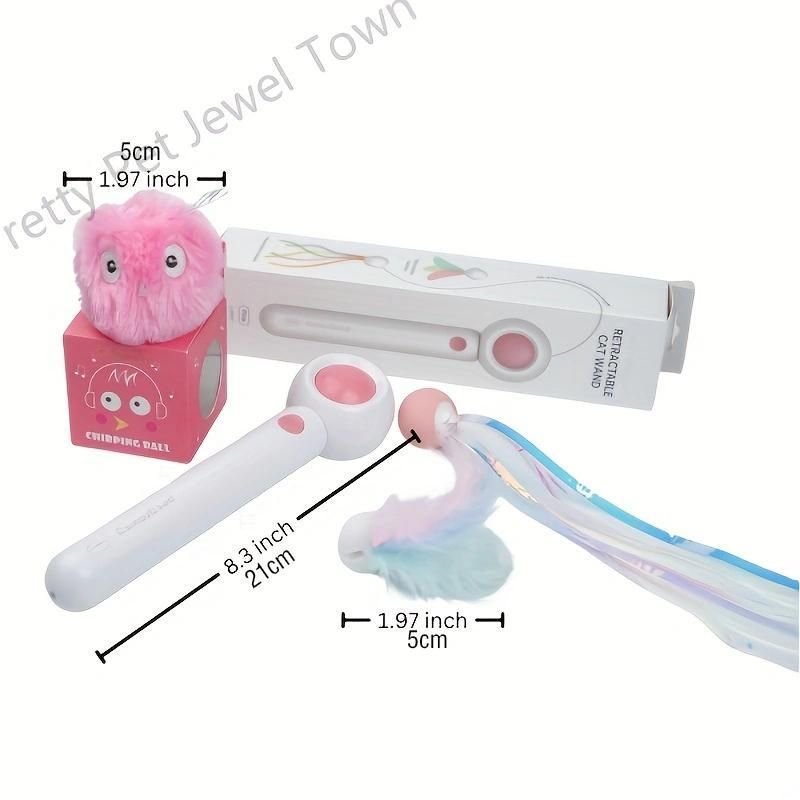 Home > Cat Toy Two Product Sets, Including Retractable Laser Cat Toy Stick + Intelligent Bird Call Cat Toy Interactive Ball, Pet Fun Products, Pet Interactiv