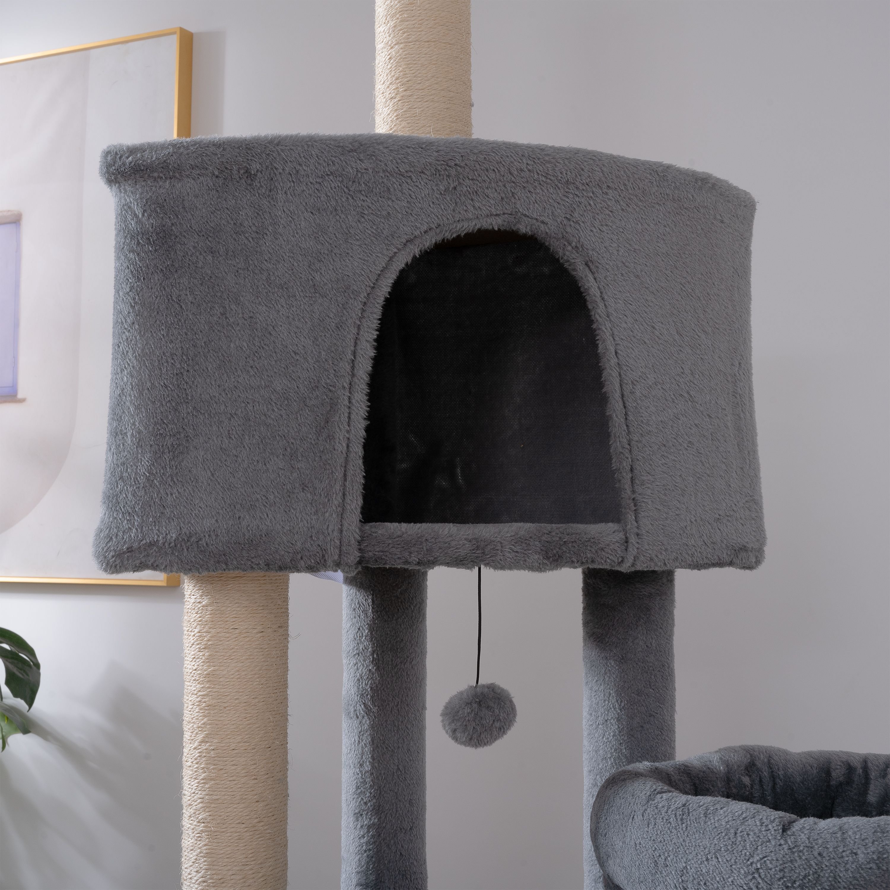Home > Cat Tree, 105-Inch Cat Tower for Indoor Cats, Plush Multi-Level Cat Condo with 3 Perches, 2 Caves, Cozy Basket and Scratching Board, GRAY COLOR