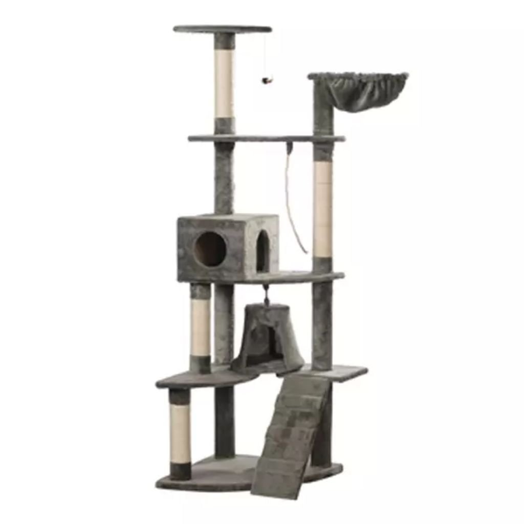 Cat Tree 75" Gray Plush Cat Tree 75" Gray Plush Cat Tree 75" Gray Plush