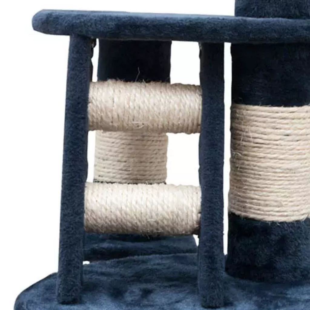 The plush carpeted surface provides extra comfort. The scratch poles are wrapped with sisal ropes for your pets to scratch and play with. There are 2 houses where your cat can hide safely and a play-pole at the very top. It also has a ladder, 3 baskets and multiple balconies to keep your cat busy as well as have a comfortable rest.