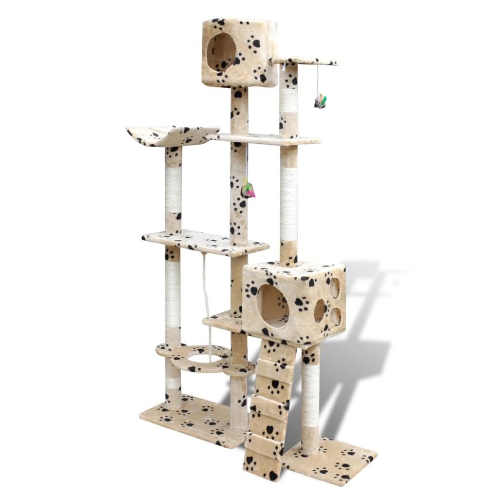 Home > Cat Tree Scratching Post 69" 2 Condos Beige with Paw Prints
