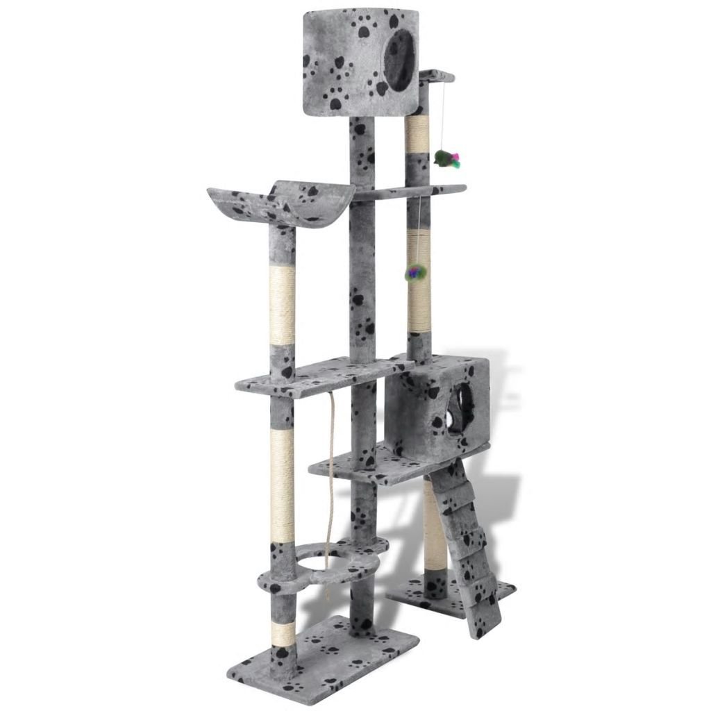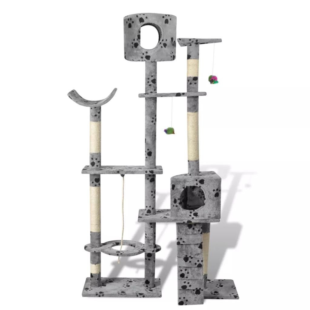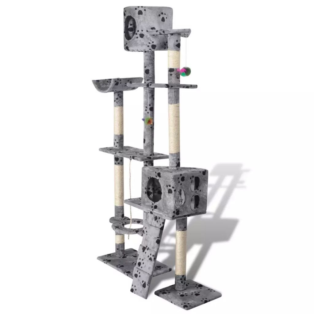 Cat Tree Scratching Post 69" 2 Condos Gray with Paw Prints Cat Tree Scratching Post 69" 2 Condos Gray with Paw Prints Cat Tree Scratching Post 69" 2 Condos Gray with Paw Prints
