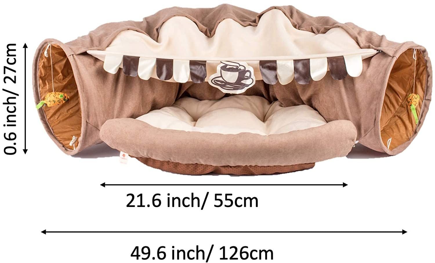 4.PRACTICAL & EASY TO USE: The thick bed and the wide tunnel are detachable and washable, tunnel and the exquisite bed curtains satisfy the cat's habit of hiding and increase the sense of security. This is a luxurious tunnel nest for a cat, make your kitty feel safe and love. Or if you have two cats,