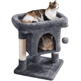 2-Level Cat Tree Kitten Condo House with Plush Perch (Color: Dark Gray)