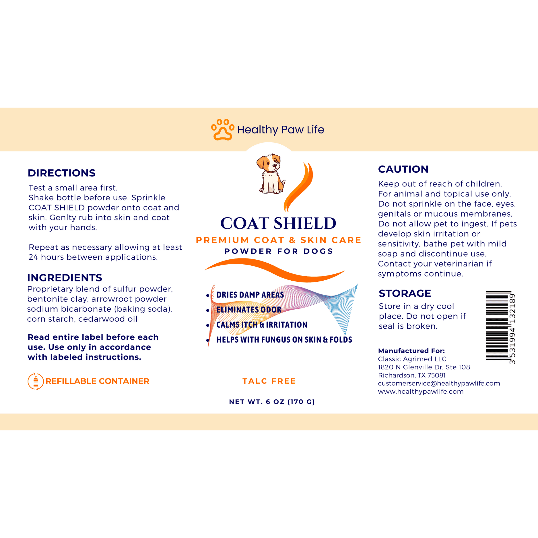Home > COAT SHIELD - Canine Dry Powder and Gentle Skin Cleanser for Allergies and Irritation for Dogs | Alleviate Odors and Itchiness | Holistic Remedy and S
