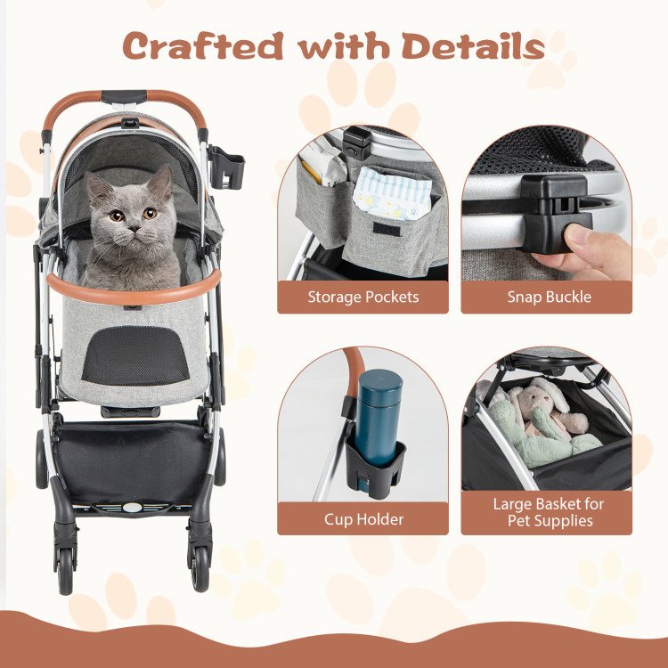 Foldable Dog Cat Stroller with Removable Waterproof Cover