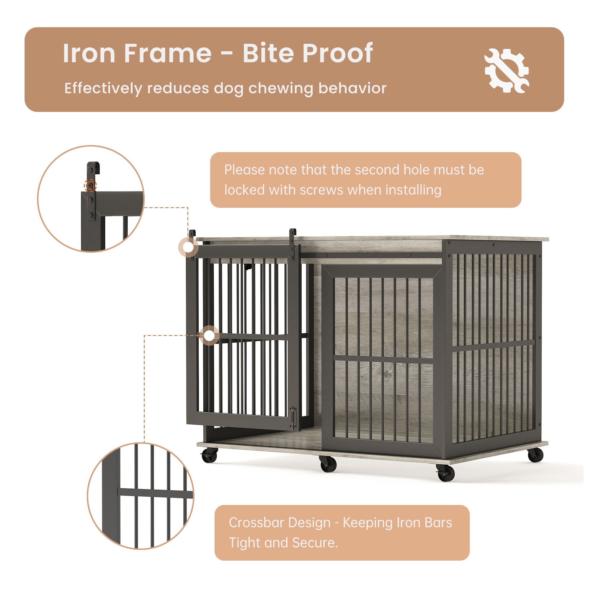 Reinforced iron frame door dog crate, more sturdy and durable, can effectively prevent your dog from tearing the door frame.