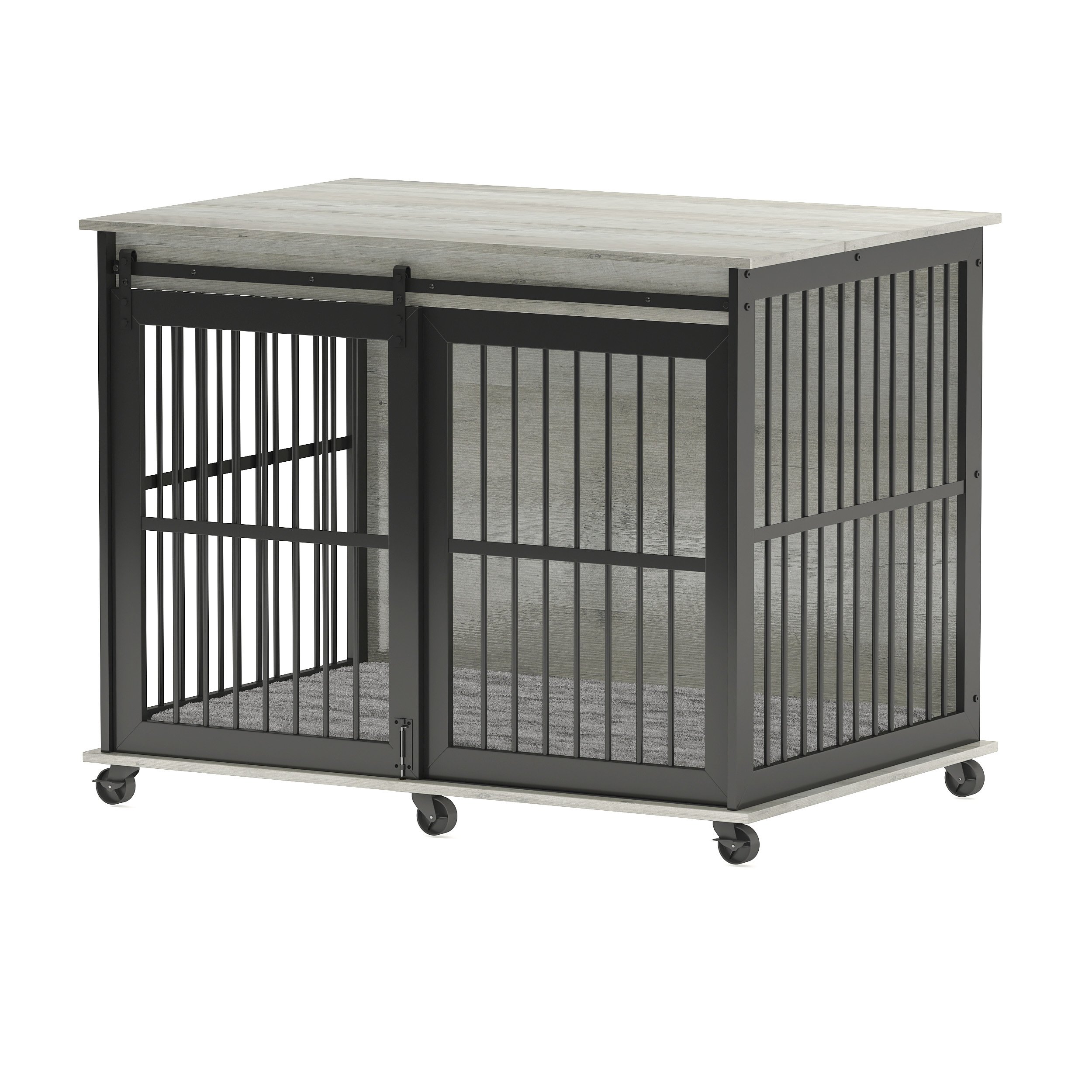 Furniture dog crate sliding iron door dog crate with mat. (Grey,43.7''W x 30''D x 33.7''H)