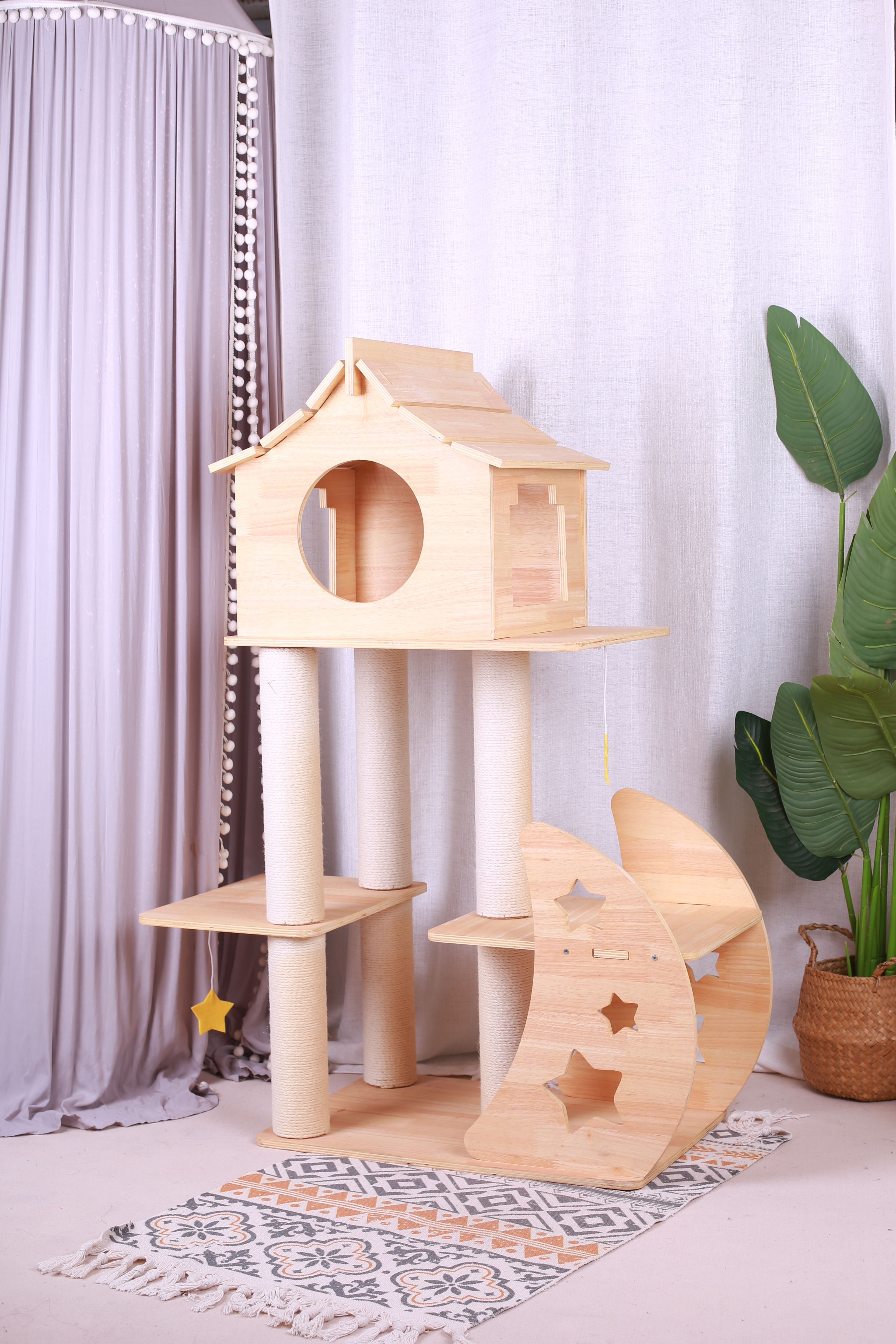 Unique Wood Material: Stand out from the crowd with the use of high-quality wood, setting EliteCat Haven apart from the majority of cat climbers in the market, which are commonly cloth-covered. The wooden material adds a touch of sophistication to your cat's environment.