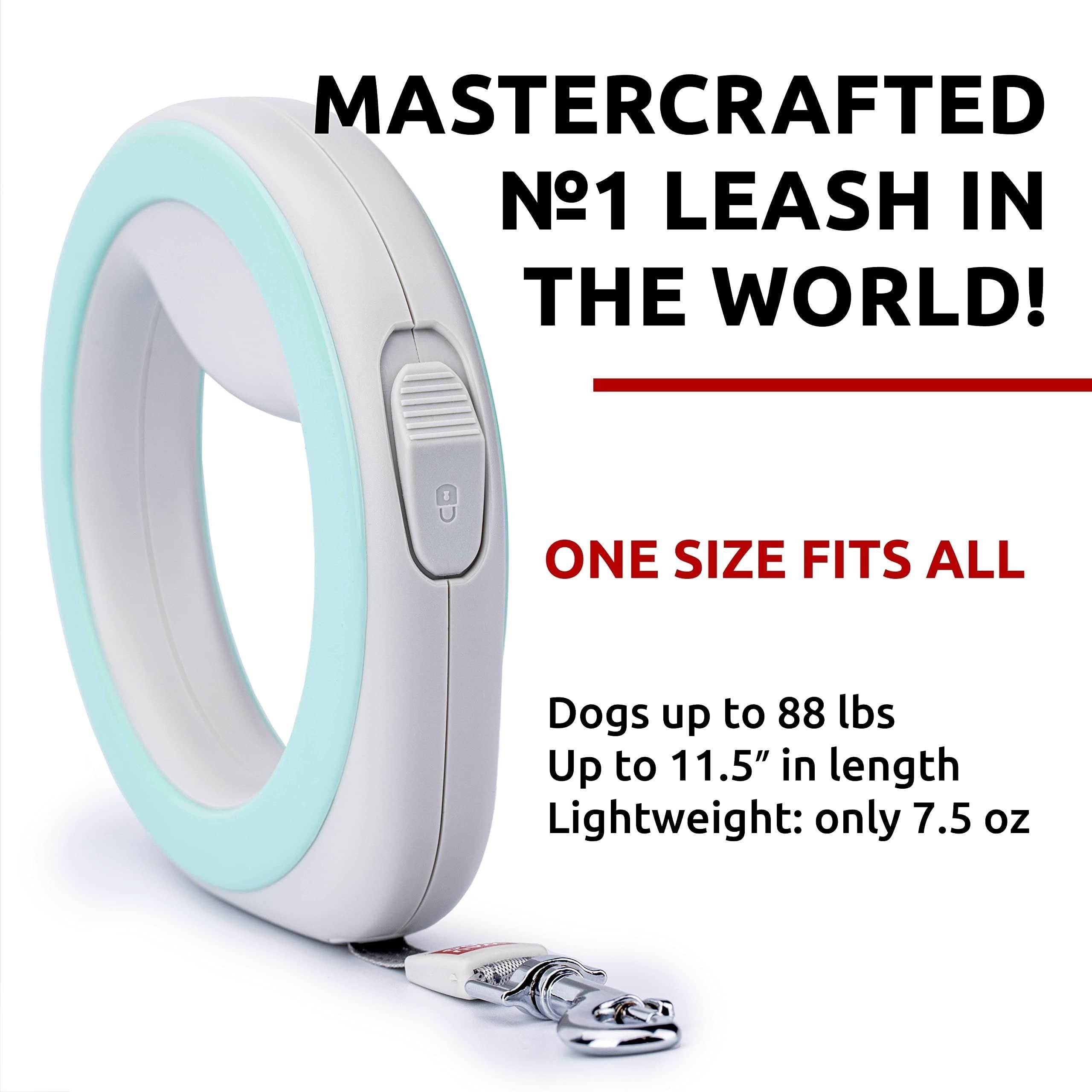 1.upgraded retractable dog leash - this isnt just another retractable leash! weve created this round r-leash to make your dog walks even more pleasant and effortless for you. try using it as a regular retractable leash or put it over your wrist for a hands-free mode you will love how easy it is to carry around.