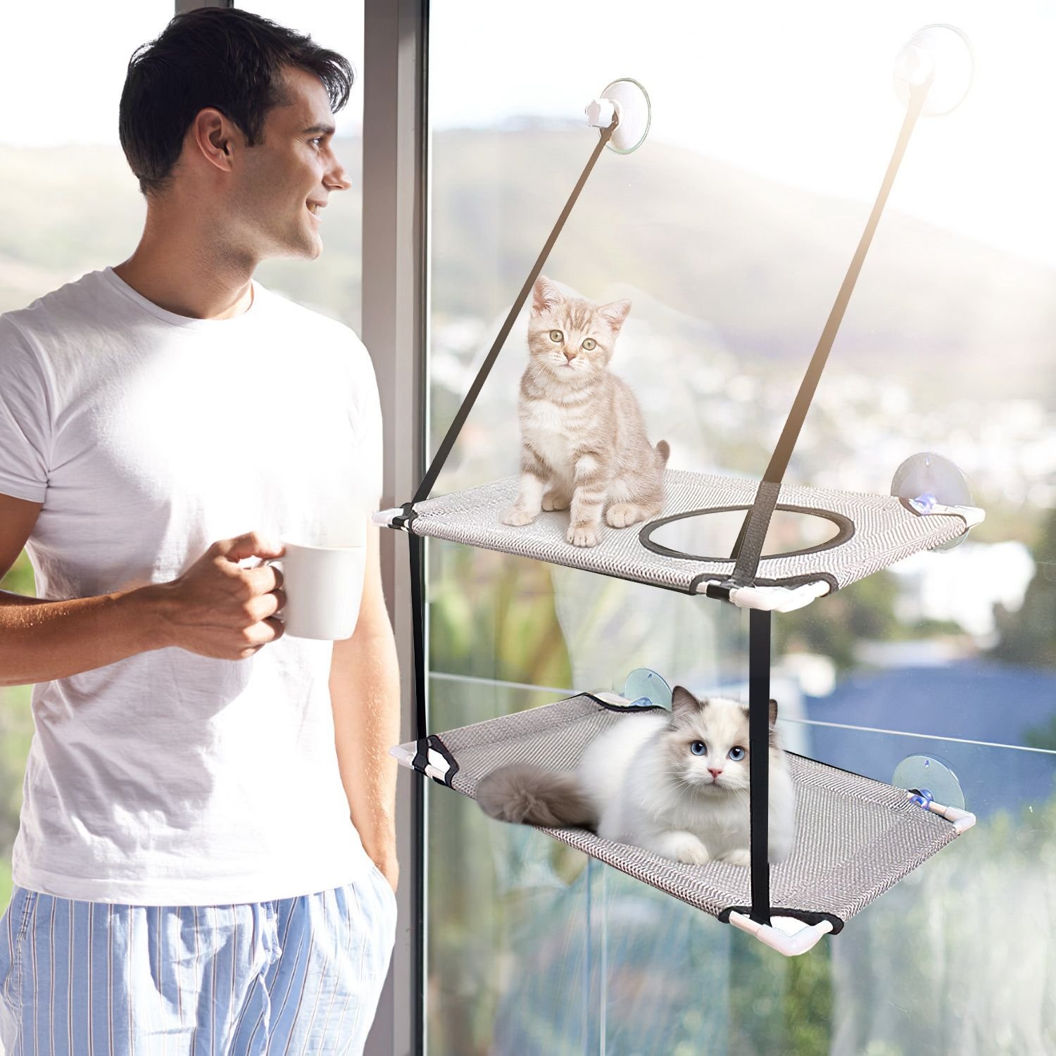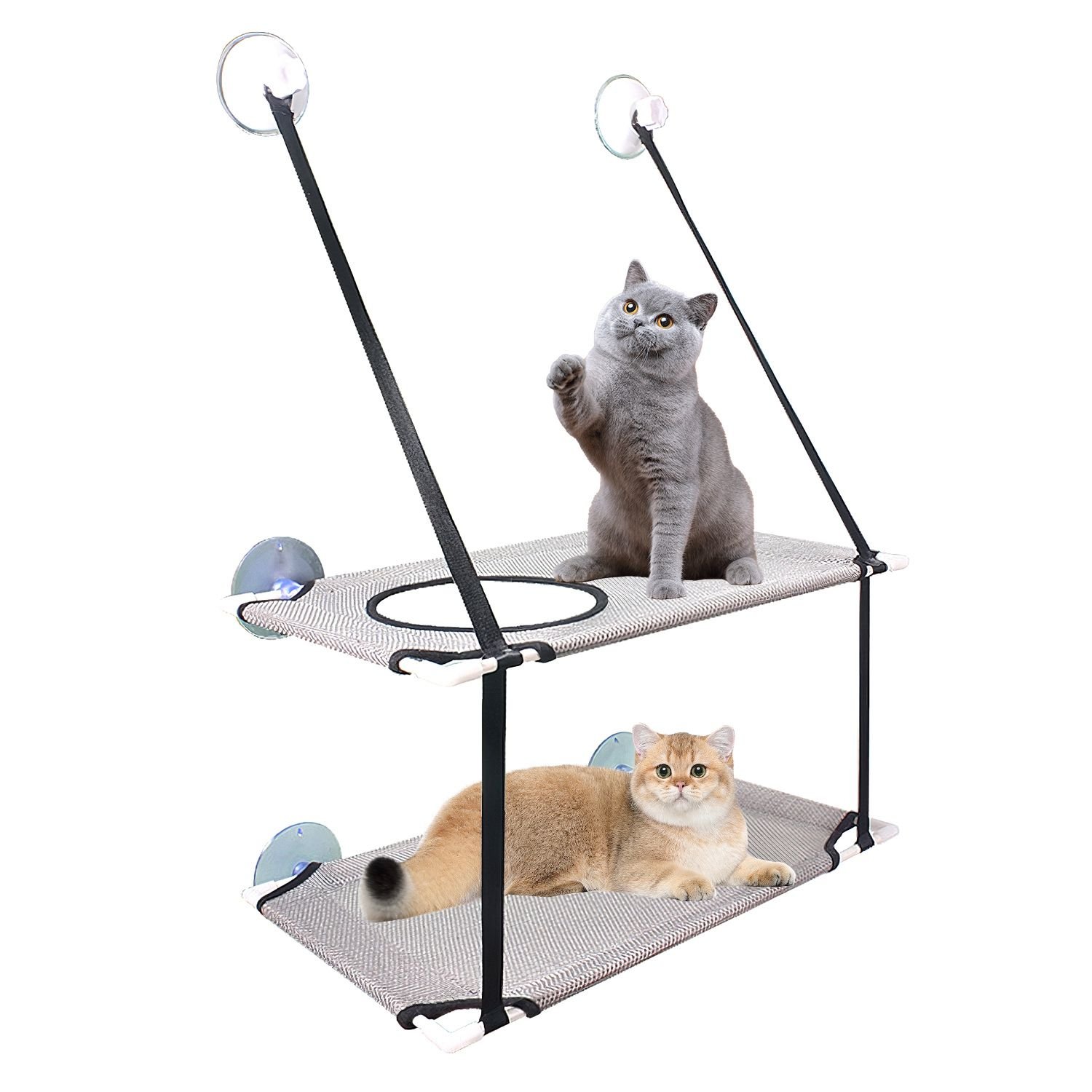 *Comfortable 360° Sunbathing*:An excellent window hammock won’t occupy extra valuable floor space. Image your cat napping on the high position,enjoying 360° full range of warm sunbathing and appreciating beautiful outdoor scenery,your cat will definitely love it!
