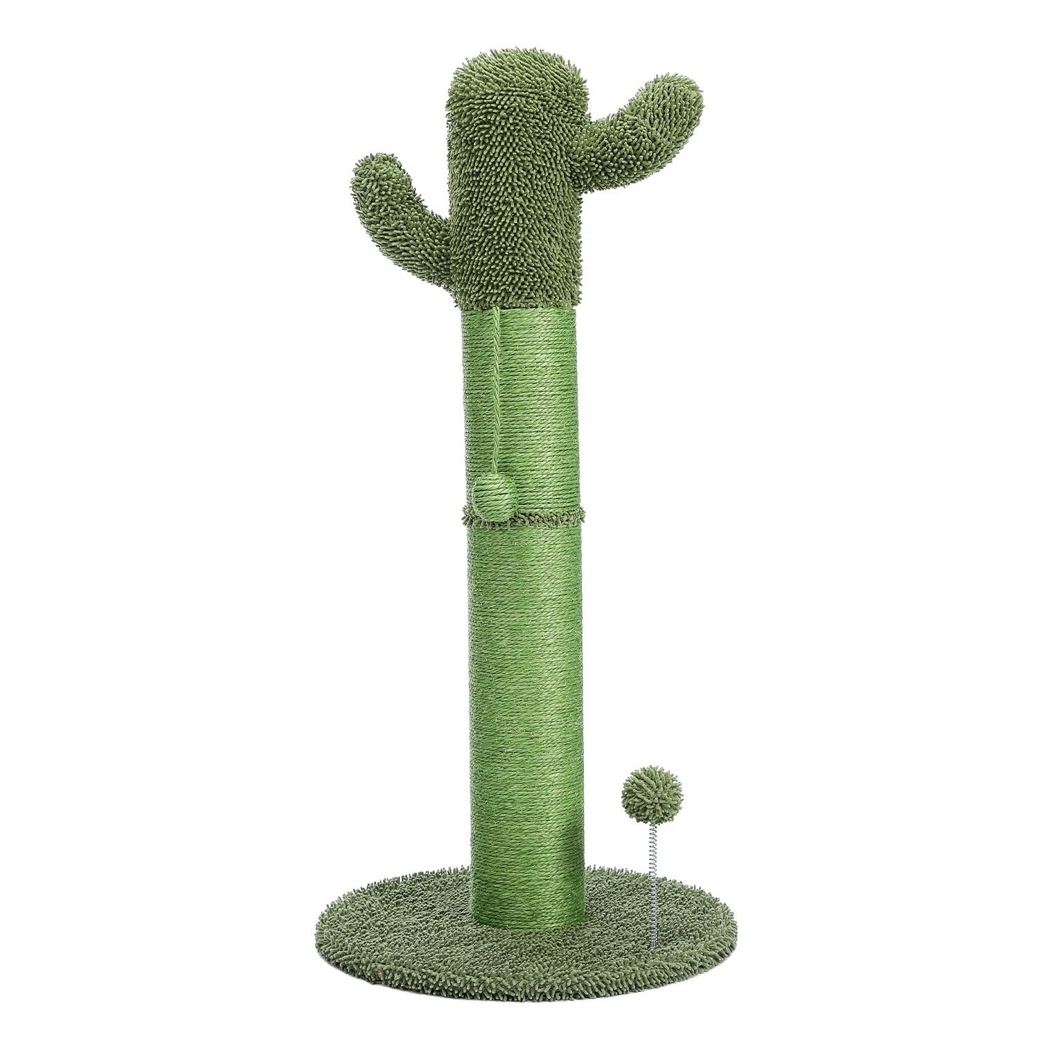 Large Cactus Cat Scratching Post with Natural Sisal Ropes, Cat Scratcher for Cats and Kittens Green