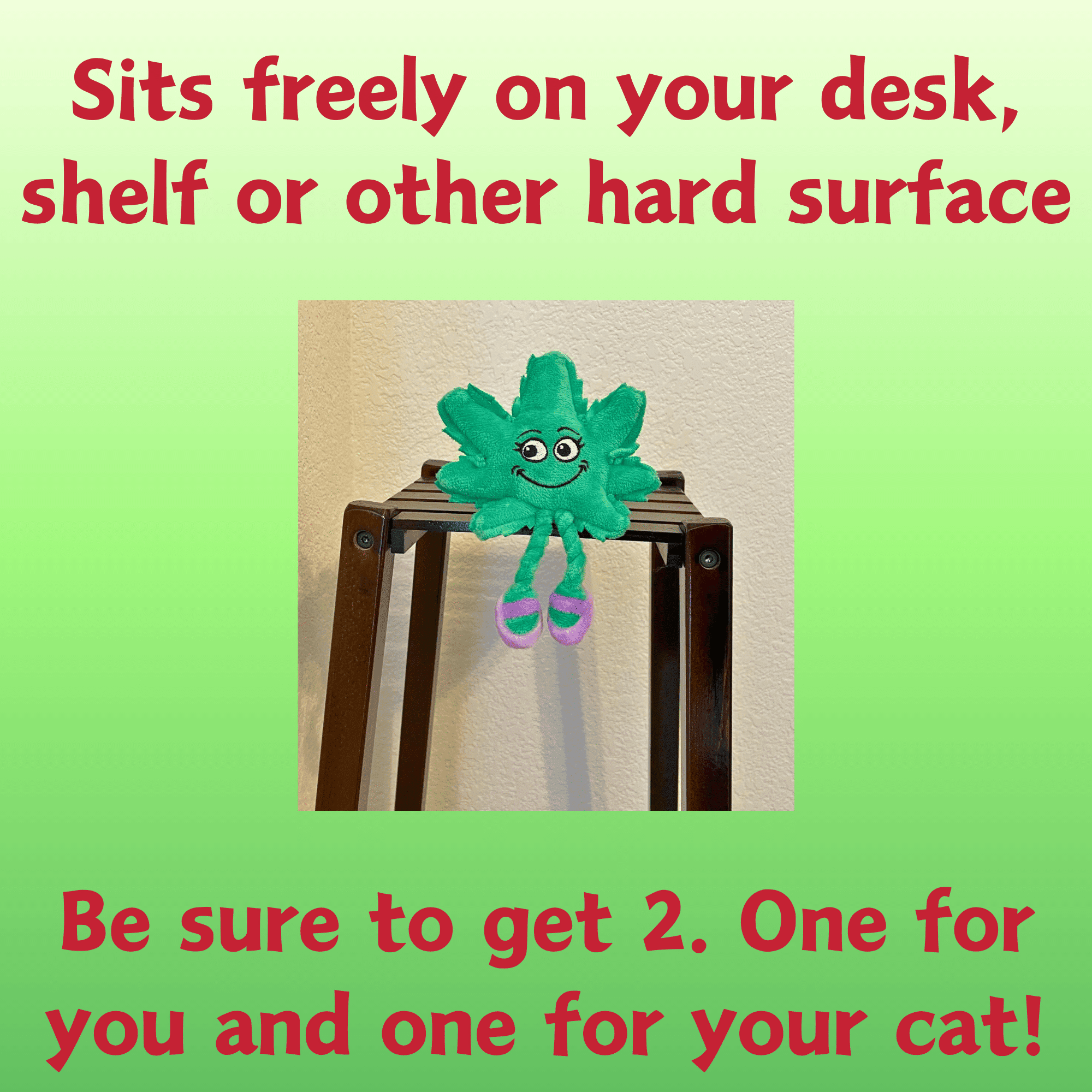 - Lil' Mary is made to sit on a shelf or surface while not in use. She looks super cute on a desk, shelf or anywhere. We suggest getting 2, one for you and one for your kitty!