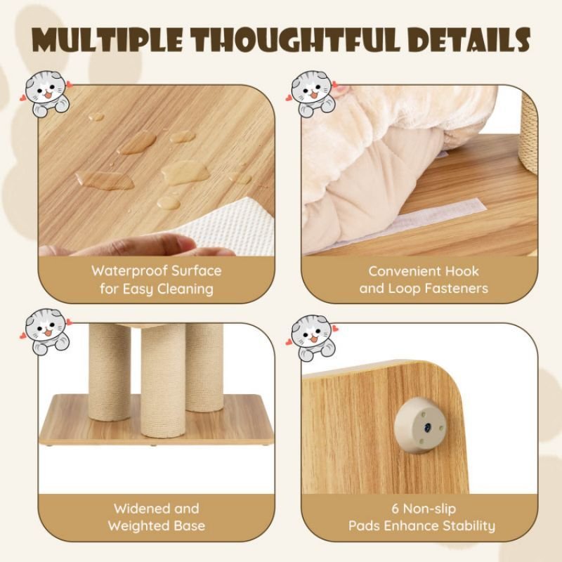 -6 non-slip pads help protect your floor and prevent the cat tree from wobbling