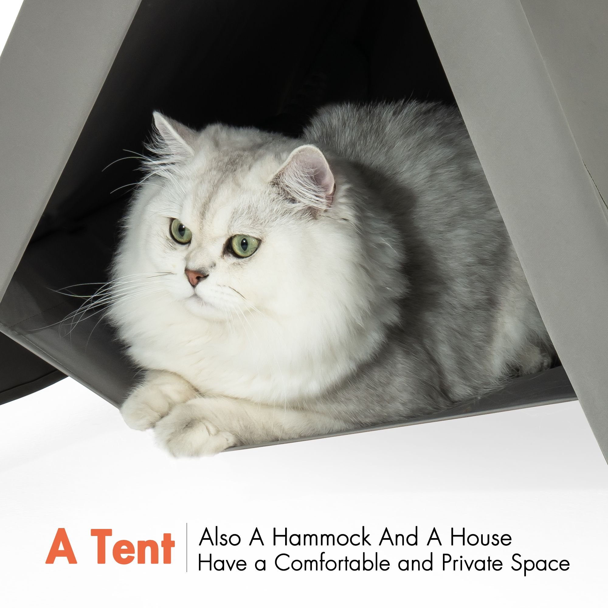 This cat tent is made of dry and breathable fabric and high quality pine wood. Easy to clean and Not easy to stick hair.