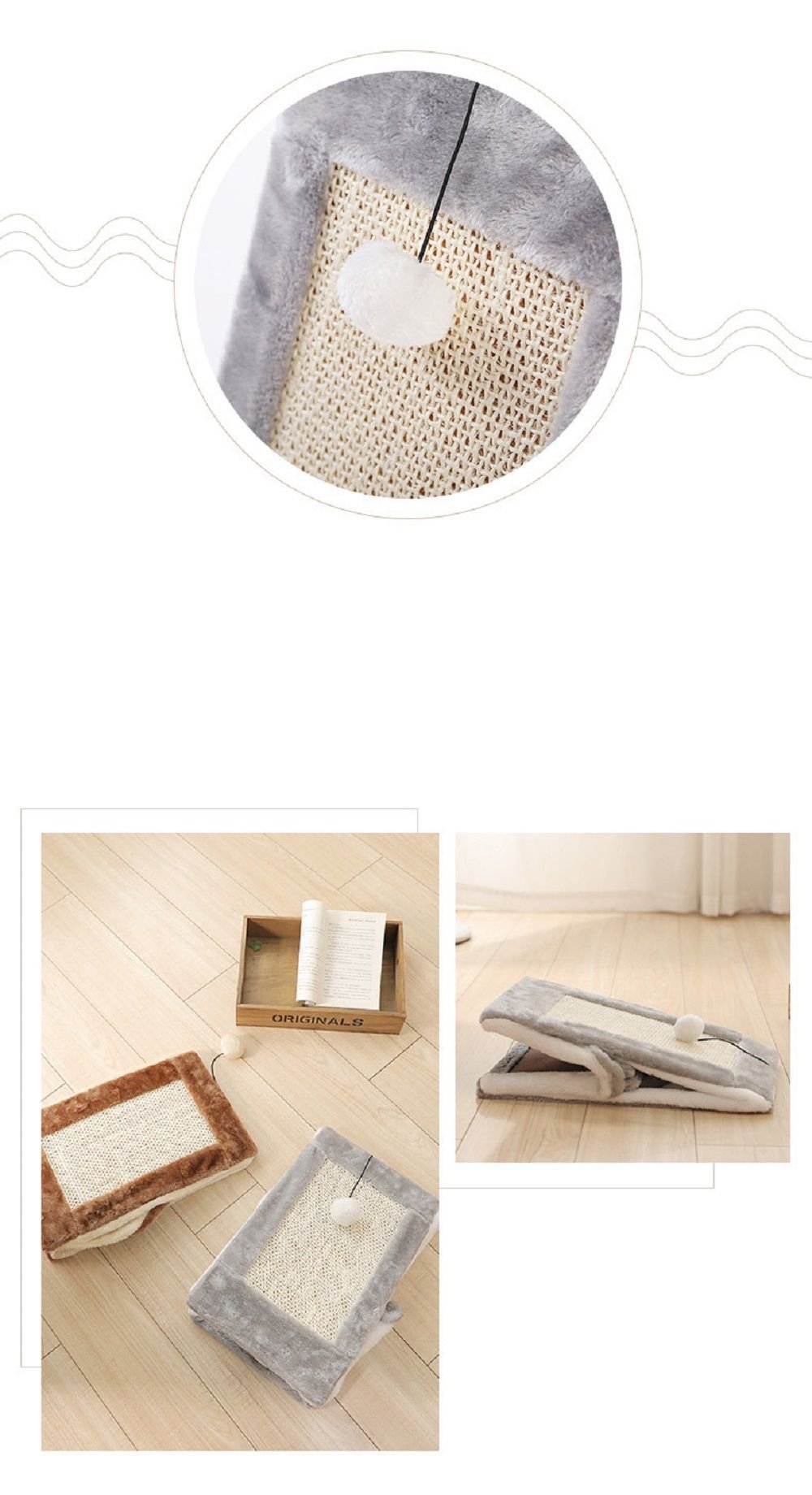5.Features: Size: Small-20"x10"x15"(L*W*H); Weight:3.5 lb; Large-22"x11"x20"(L*W*H); Weight:4.3 lb; High-Density Board, Sisal Rope, Fur.