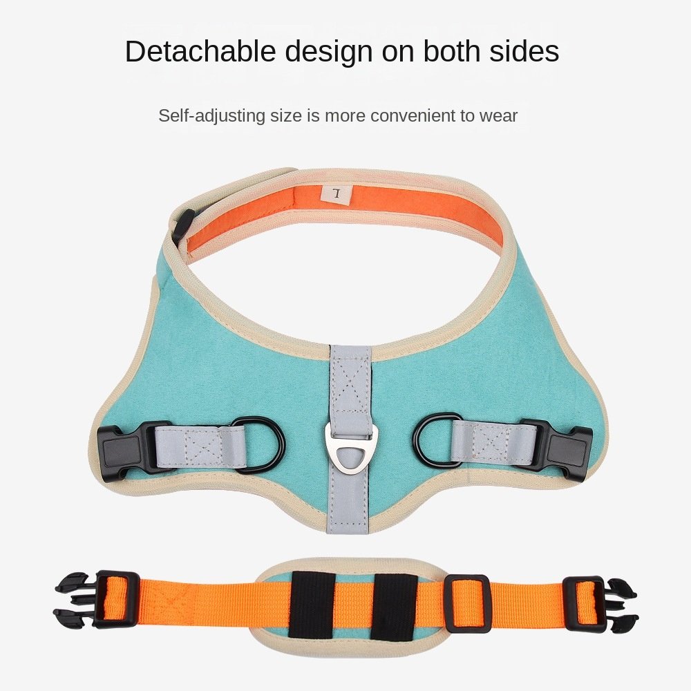 dog Harnesses and dog leash set; Suede Pet Chest Strap Saddle Vest Style Dog Chest Back Reflective Dog Strap Dog Rope