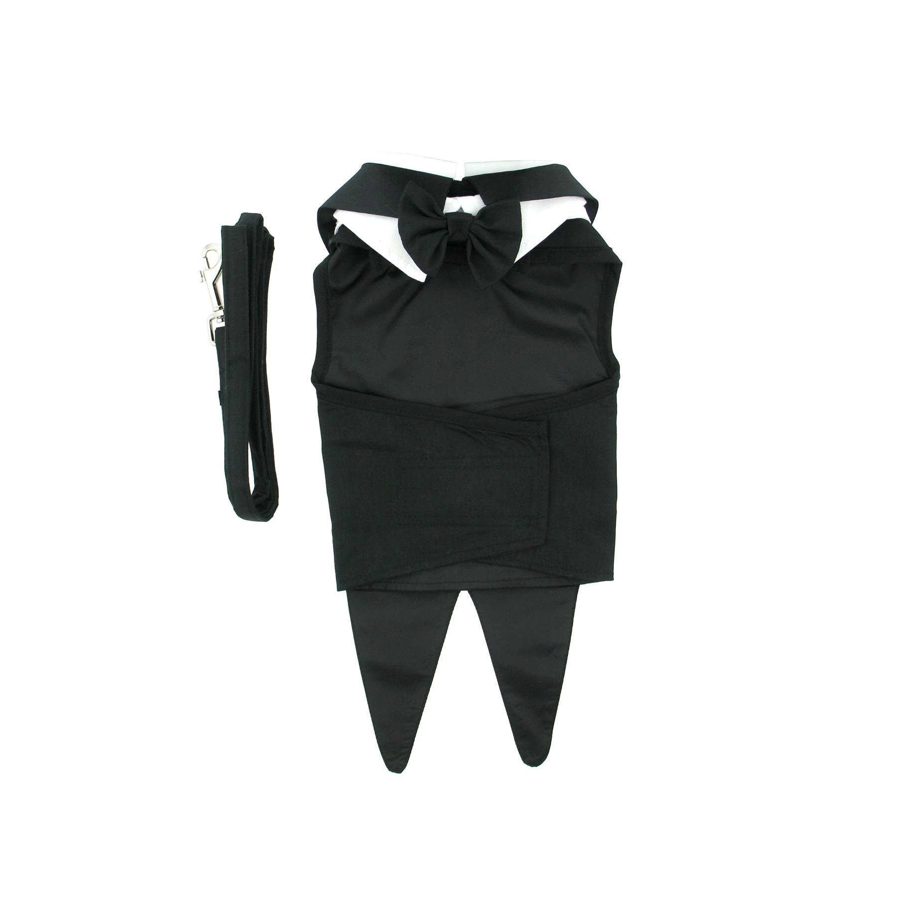 Black Dog Harness Tuxedo w/Tails, Bow Tie, and Cotton Collar Special Occasion Formal