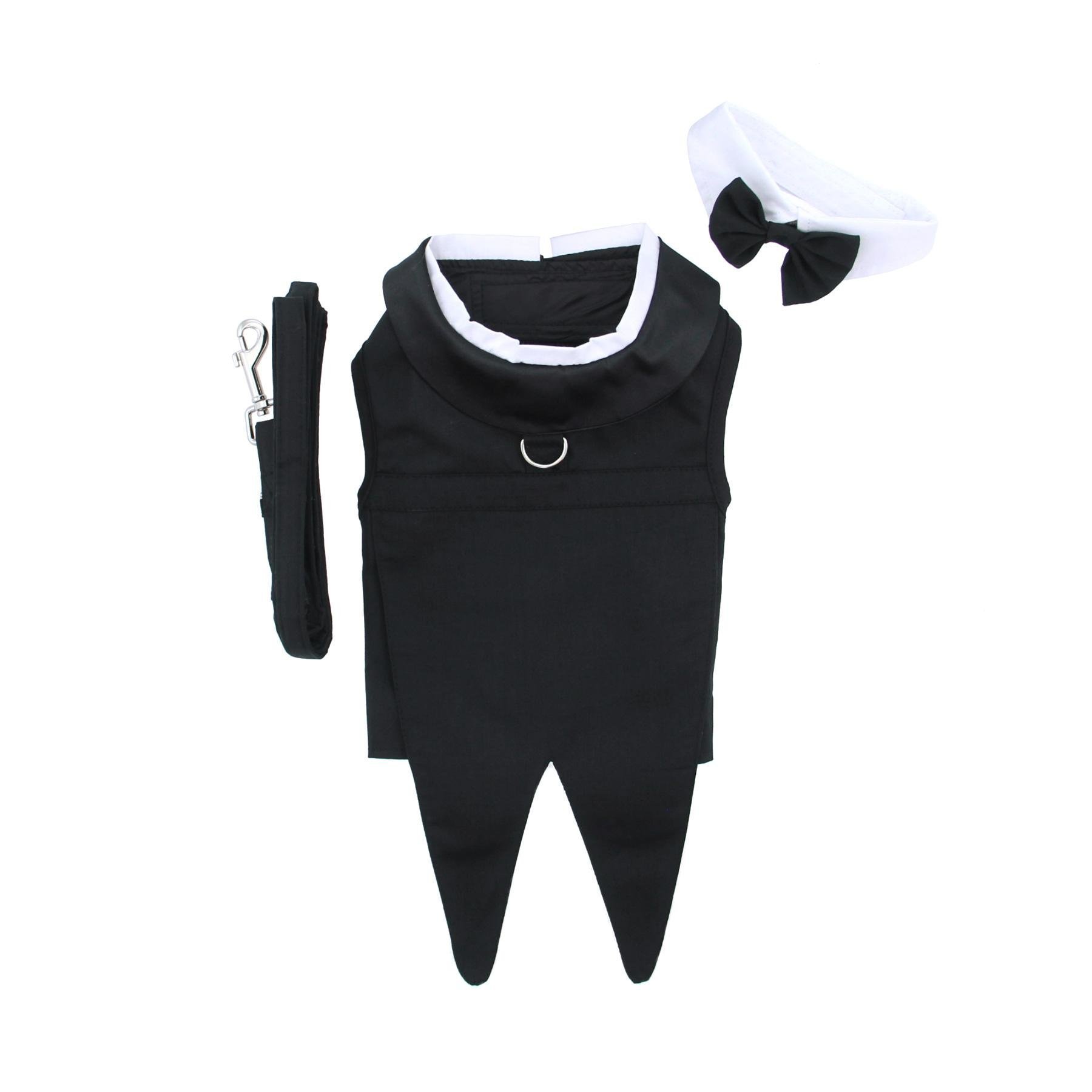 Black Dog Harness Tuxedo w/Tails, Bow Tie, and Cotton Collar Special Occasion Formal