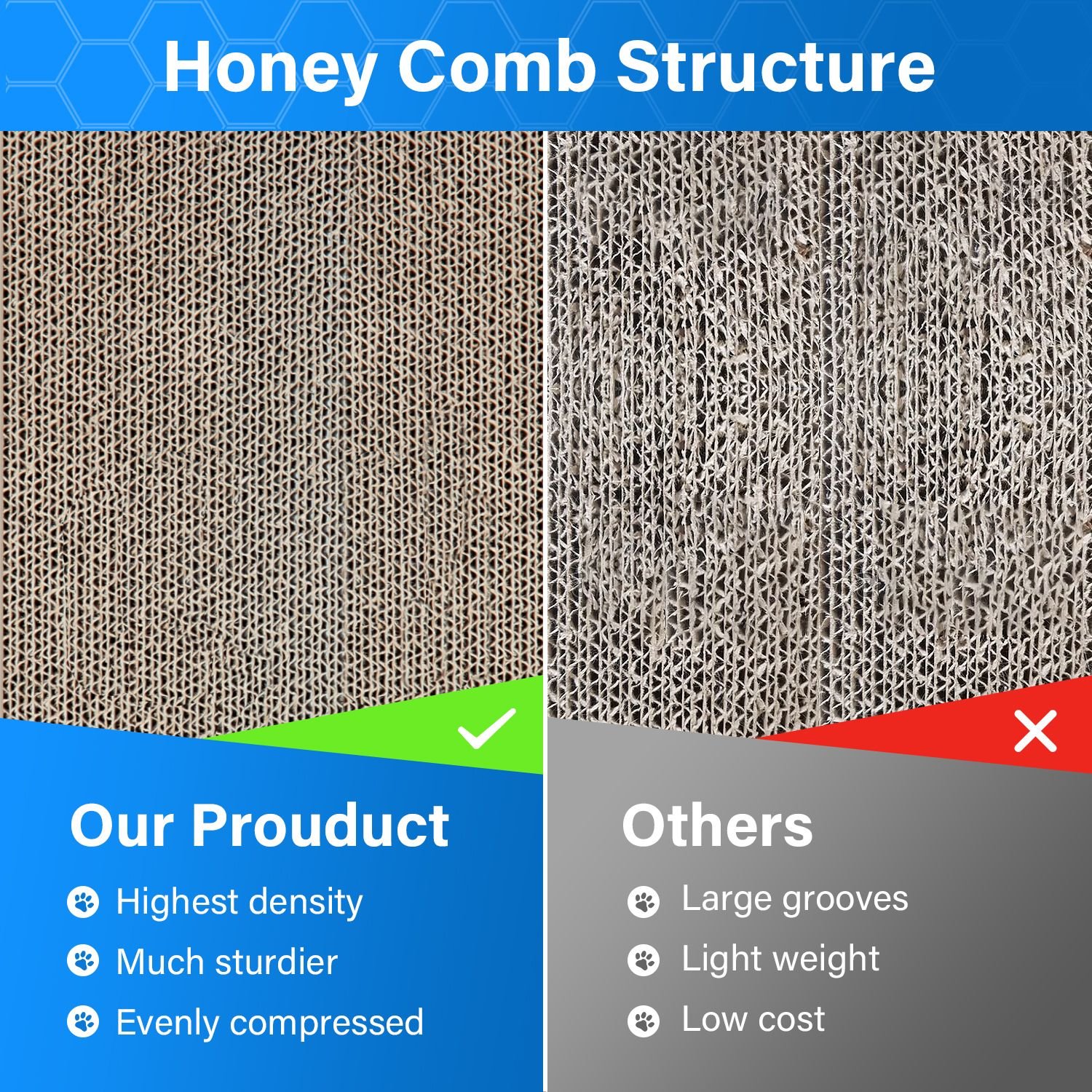 [DURABLE MATERIAL]: Made by high-quality corrugated cardboard. Five layer of corrugated paper as a pressed unit, put together with strong glue bond to ensure the durability.Cat scratching Board can be used for both vertical and horizontal scratches, and it is fully reversible.
